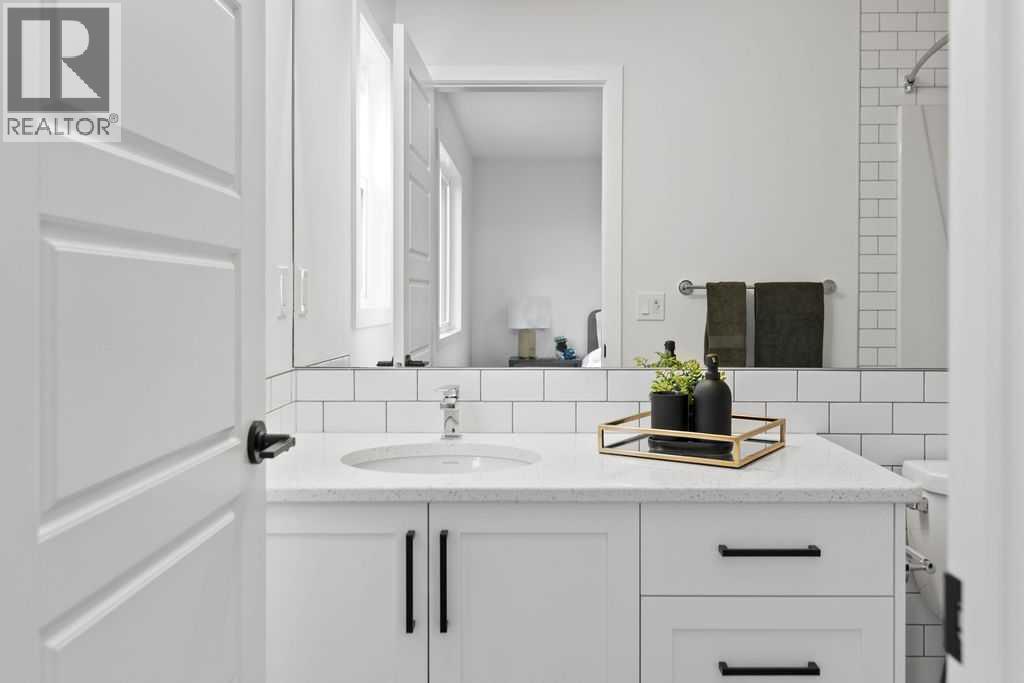 Welcome to the perfect starter home in the sought after community of Coopers Crossing! Built by award-winning builder McKee Homes, walking distance to the Coopers Promenade. It’s perfect for family living with two spacious master bedrooms, and a rear double car garage. The kitchen boasts upgraded cabinetry with two banks of drawers, quartz countertops, stainless steel appliances, and a large pantry. Enjoy luxury vinyl plank flooring throughout the main floor, large windows that flood the space with natural light, and exquisite designer detailing. Upstairs, the owner's suite features a walk-in closet and ensuite, complemented by two additional bedrooms, a full bathroom, and a laundry room. Take advantage of this incredible opportunity to own a brand-new home in one of the last remaining opportunities in Coopers Crossing. (id:6769