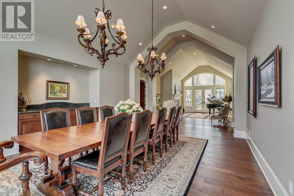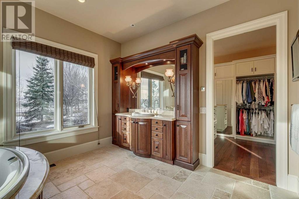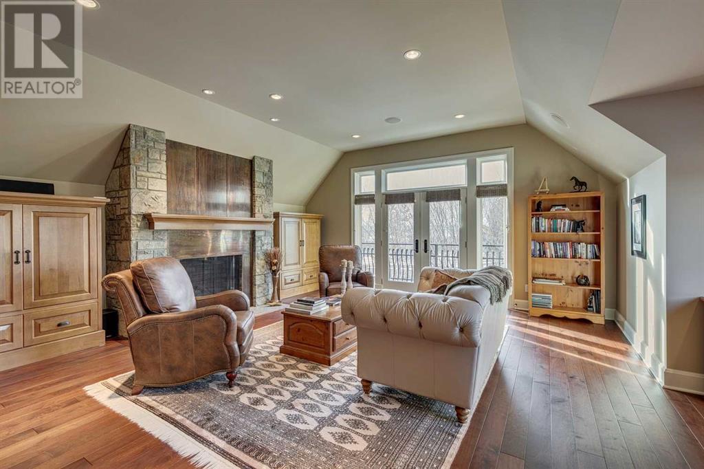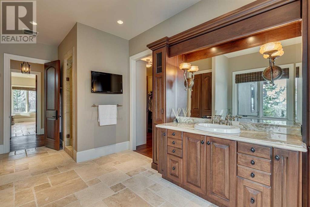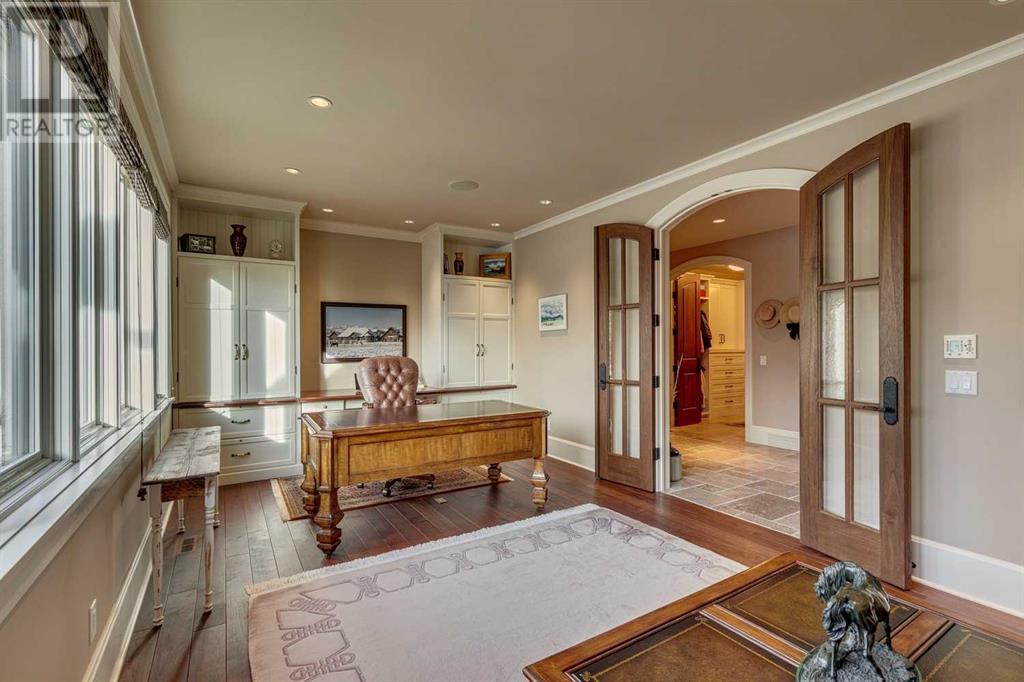 Nestled on 6.1 serene acres only 5 minutes to Calgary city limits, this exquisite French Country estate offers an unparalleled blend of luxury and elegance with a stunning mountain view. Culinary enthusiasts will love the chef-inspired kitchen, featuring two oversized islands and integrated built-in appliances. The home boasts a very large dining room, perfect for hosting grand gatherings, and a butler’s pantry with a dumbwaiter for seamless service. The expansive primary suite is a true retreat, featuring a cozy fireplace and separate his-and-hers en suites, both with steam showers and spacious walk-in closets. A charming upstairs loft includes its own spacious bedroom, family room, laundry and a spa-like bathroom. The walk-out basement is an entertainer’s dream, complete with a wet bar, gym, wine room, and additional butler’s pantry. Outdoors, unwind in a private oasis with a tranquil pond, cascading waterfall, and beautiful pergolas. A gated driveway and oversized quadruple garage complete this remarkable property, offering privacy and sophistication at every turn. (id:6769